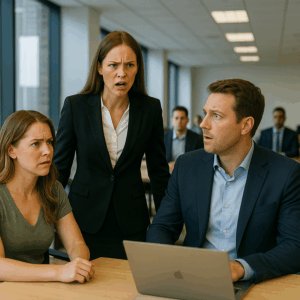 “But I also wanted to say,” she added, “you’re allowed to fall apart a little, too. You don’t always have to be the composed CEO. You’re a human who just got hit with a double betrayal in your own conference room. That’s… a lot.”