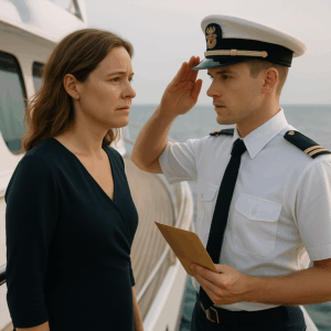 My husband’s family held a yacht trip to “honor” his late father, a military general. They barred me from the private ceremony. But as I was walking the deck, a young officer suddenly stopped me, saluted, and said: “Ma’am, we’ve found the letter the General left for you. The directive within is effective immediately.”