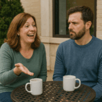 “My Wife Publicly Joked About Trading Me for a ‘Better Husband’ at a Neighborhood Party — But When Our Quiet Neighbor Responded, Her Smile Vanished, and Everyone at the Table Went Completely Silent”