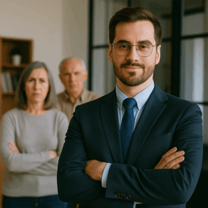 At the long table sat my parents, my siblings, and an older man with a sharp suit and calm authority — clearly the boss.