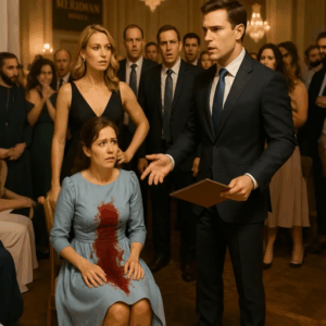 Ben stood in the doorway, flanked by three men in tailored suits. His eyes scanned the room until they landed on me—on my wine-stained dress.