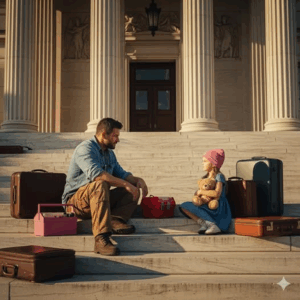 Without hesitation, Tyler lifted her gently into his arms. She weighed almost nothing. Step by step, he carried her up the courthouse stairs, the autumn air brushing against his back.