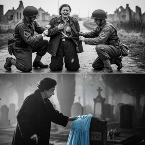 Liselotte Brandt stood in the muddy field with her hands raised, trembling in silence. Her dress, once a pale blue, had become soaked and heavy, clinging to her shivering frame. Around her, American infantrymen moved cautiously, their boots sinking into the wet earth, weapons lowered but ready.