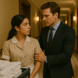That March morning, the city sky was dazzling blue, and Beatriz expected nothing but another routine day. She wheeled her service cart down the fifteenth-floor corridor, arranging towels, when hurried footsteps echoed.