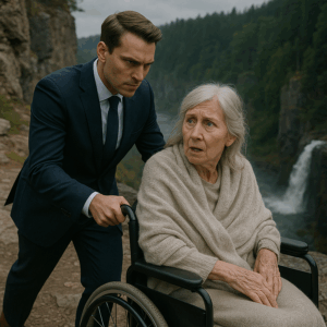 He leaned in close, smiling coldly, and whispered something only she could hear. Then he shoved, the wheelchair rolled. Her scream tore through the air, sharp, raw, cut short by the crashing wind below.