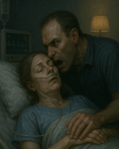 The doctors scrambled, reattaching lines, adjusting machines. The husband stood frozen, his face drained of color.