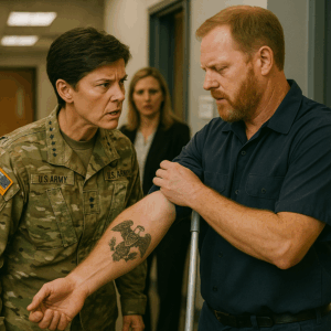 Years later, when General Rebecca Cole retired, she kept only one photograph on her desk — not of medals or parades, but of a man in overalls standing beside a broom, with a faded tattoo on his arm and a quiet smile.