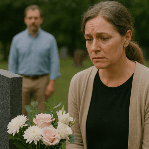 When she looks back now, she remembers the silence at the graveside, the whisper of wind through the trees, the faces of those who stood beside her. She remembers the empty space where her husband should have been.