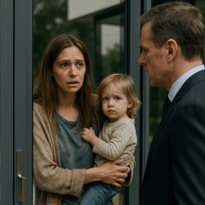 On his doorstep stood a woman in her twenties, a cardigan frayed at the sleeves, jeans torn at the knees. Her hair was messy, her face pale. In her arms, she cradled a little girl—barely two years old—whose wide blue eyes locked with his.