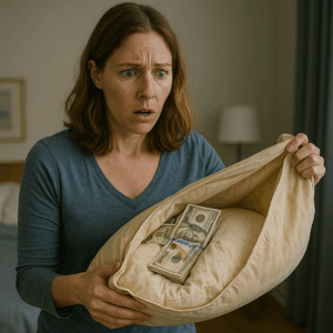 As she tugged it free, she noticed the pillow felt heavier than it should. Something shifted inside with a faint rustle.