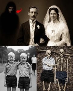 It began as a celebration of love, a moment of joy preserved forever in a photograph. But when the family gathered to admire the wedding portrait taken on a quiet summer afternoon in 1912, joy quickly dissolved into disbelief. There, between the bride and groom, was a face no one expected to see.