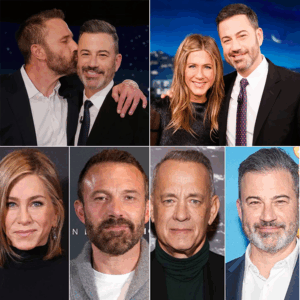 For decades, Hollywood has thrived on glamour, power, and an unspoken code of control. Yet beneath the red carpets and golden awards, tensions have simmered. Now, with the shocking suspension of late-night figure Jimmy Kimmel, the glittering empire has erupted into chaos. Jennifer Aniston, Ben Affleck, and hundreds of stars have stepped forward, leading what some describe as an unprecedented revolt against hidden powers pulling strings in the shadows.