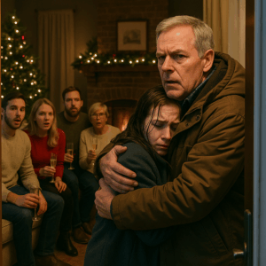 He came to surprise his daughter on Christmas Eve, but instead discovered her abandoned on the porch, trembling in the winter night. Inside, her husband’s family toasted by the fire. The moment he stormed in and spoke six unforgettable words, every smile vanished and silence swallowed the glittering celebration whole.