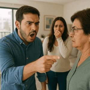 His words tore through the air like sharp glass. He stood in the middle of my living room, fists clenched, his eyes blazing not with anger alone, but disappointment — the kind that only comes from someone who believes he’s been wronged by blood.