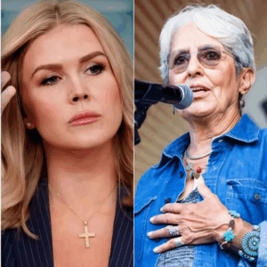 When a television studio books Joan Baez, they usually expect grace, poetry, and the kind of quiet wisdom earned through more than half a century of performing. What they might not expect is a moment so electrifying that it sends shockwaves through the audience, leaves the host frozen mid-sentence, and instantly becomes the kind of cultural highlight everyone talks about for days. Yet that is exactly what happened when Joan sat across from Karoline, a fast-rising talk-show personality known for her spirited style, during what was supposed to be a calm, reflective interview.