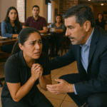 When a Humble Waitress Accidentally Spilled Coffee on a Rude Customer and Whispered, “Please, Don’t Kick Me… I’m Already Hurt,”…
