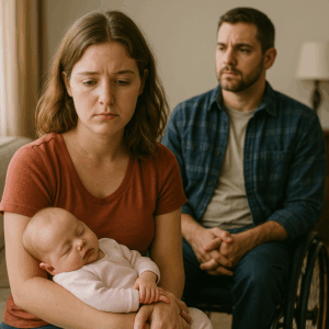 Instead, I looked at Ethan—my husband, the man who had once kissed my belly every night, the man now trapped in a chair but still carrying secrets heavy enough to crush us both.