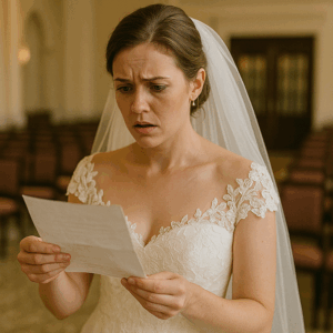 On Her Wedding Day, the Bride Walked Down the Aisle Holding a Letter Instead of Flowers — She Smiled Through the Ceremony, But When She Reached the Altar and Read What She’d Discovered in Her Groom’s Pocket That Morning, the Entire Church Fell Silent and the Wedding Stopped Cold