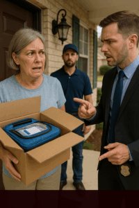 And there it was — Karen, dragging the package from my porch onto a dolly, smirking as she wheeled it to the office.