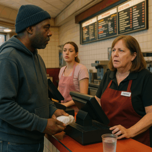 Jordan handed over cash. Denise dropped the change on the counter without a word. The coins clattered, one rolling to the floor. She didn’t bother to pick it up.