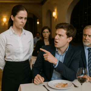 As she leaned over to set down a dish, Ethan deliberately shifted his wine glass — and it spilled.