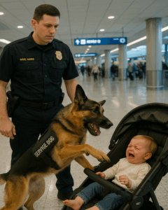 Weeks later, passengers still recalled the moment. Some remembered the shriek of the mother, others the deafening silence after the discovery. But all remembered the sight of a German Shepherd standing proudly by the stroller, unshaken, as chaos swirled around her.