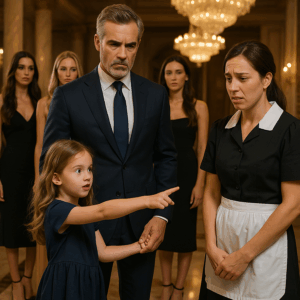 The billionaire expected his daughter to choose among glamorous women beneath crystal chandeliers. Instead, the seven-year-old shocked the room by pointing to someone no one considered: the maid quietly carrying a tray in the corner. What followed exposed truths about love, family, and the kind of woman a child trusts.