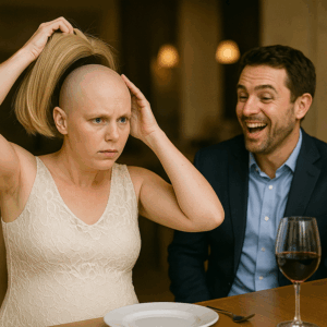 Before he could respond, she reached up — and slowly, carefully, removed her wig.