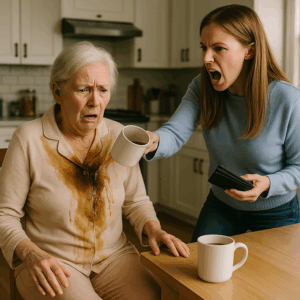 Before Margaret could reply, Lisa’s hand jerked. A cup of boiling coffee flew, splashing across Margaret’s thin pajamas. The heat burned her legs, but the humiliation seared far deeper.