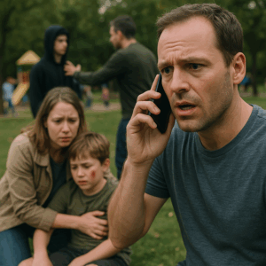 My voice cracked. “Please… you need to come now. Something happened at the park.”