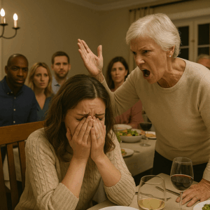 The room shifted. Heads turned, eyes widened. My mother-in-law froze, her hand still mid-air, her power suddenly broken by that single word.