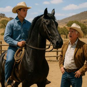 With one smooth motion, Mateo swung onto the stallion’s back. The crowd gasped. For a second, silence blanketed the corral.