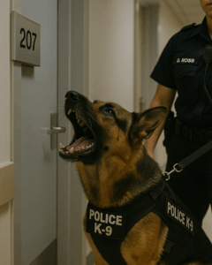 “Easy, boy,” Danielle whispered, tugging gently at his leash. But Max refused to budge. His gaze was locked on the closed door of Room 207, his barking growing louder, more urgent with each passing second.