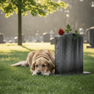 A golden retriever walked alone to the cemetery. In his mouth, he carried a flower — sometimes a daisy plucked from a field, sometimes a rose borrowed from a neighbor’s garden. He placed it gently on a single grave under a young oak tree, then lay down beside it in silence.