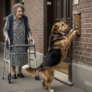 Finally, a neighbor on the second floor, irritated by the insistent sound, leaned out the window. What he saw froze him: a dog pressing the buzzer, again and again, until someone noticed.