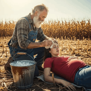 One afternoon, when the sun seemed to burn straight through the soil, Hank noticed a figure on the roadside. A young woman, visibly pregnant, crouched in the dirt with sweat soaking her back. She wore the badge of a local newspaper, but her strength was crumbling under the weight of the heat.