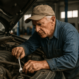 There he stood: 70 years old, back straight, toolbox dented and scratched, his gray eyes gleaming with the same fire that had carried him from apprentice to master.