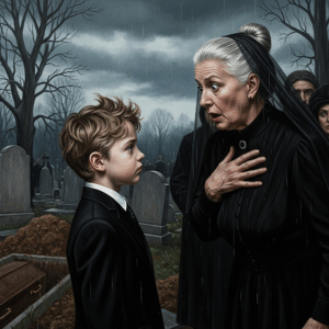 “The Funeral Fell Silent When the Mute Boy Suddenly Opened His Mouth After Years of Silence — What He Said to His Grandmother Was So Shocking, So Heart-Stopping, That Even the Priest Dropped His Notes, While the Entire Room Struggled to Breathe Under the Weight of His Terrible Revelation”