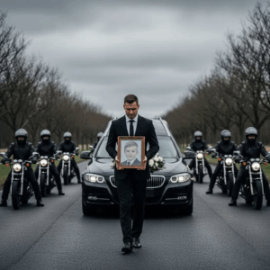 Locals peeked through curtains. Whispers spread like fire: “Who is being buried?” “Why so many bikers?”