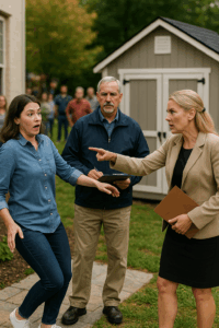 The HOA President Tried to Report My Backyard Shed for “Violating Neighborhood Standards” — She Thought She’d Get Me Fined or Forced to Tear It Down. But When the City Inspector Showed Up, He Took One Look at Her Property, Made a Call, and Gave Her the Ticket Instead.