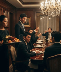Minh volvió a la sala, con una sonrisa radiante en el rostro, como si nada hubiera pasado. La cena con sus socios de negocios continuaba. Los hombres, vestidos con trajes caros, levantaban sus copas, reían y hablaban de futuros contratos. Para Minh, aquella noche era una oportunidad para impresionar a una corporación japonesa —un paso importante hacia la expansión internacional de su empresa.