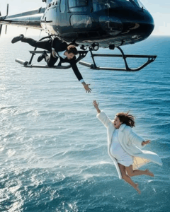 He leaned close, his words barely audible over the roar of blades. “Come to the door, love. The view is breathtaking.”