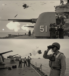 Petty Officer First Class Hiroto Sakamaki stood on the starboard platform of his ship’s anti-air battery and pretended that the wind was only wind. Not a warning. Not a messenger. Just moving air, tasting of salt and engine heat and the distant smoke that never really left the horizon anymore.