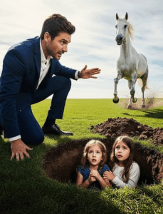 Luna reached up, grasping the stallion’s mane. Estela followed, clinging to his side. The horse lowered his head gently, nudging them out of the shallow pit Eduardo had dug.
