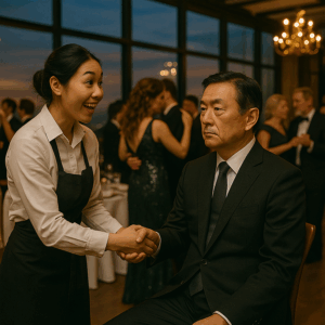 For the rest of the evening, Kenji was no longer alone. Guests who had once avoided him now lined up to shake his hand, to offer drinks, to apologize for their earlier distance. Businessmen spoke eagerly about opportunities in Tokyo. Women asked about his travels.