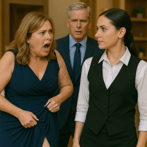The room froze. Gasps rippled through the crowd as realization dawned. The woman Karen had humiliated was not a waitress — she was his wife.