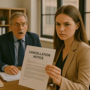 Inside: a cancellation notice. The deal was void. Effective immediately.