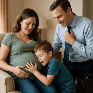 Rachel leaned back in the armchair, her nine-month belly round beneath her hands. Each kick reminded her of the life inside—a second child, a long-awaited brother for her seven-year-old son, David.