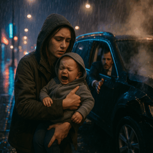 When she yanked open the back door of the SUV, a baby’s wail nearly broke her heart. A tiny boy, no more than two, was trapped in his car seat, his cheeks red and wet from tears. Instinct took over. Emma’s hands, though trembling, unbuckled the straps, and she lifted him out, cradling him against her chest.