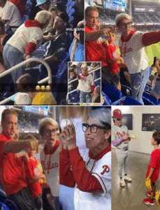 During a Phillies home game, a foul ball arced into the stands. Fans leapt from their seats, hands reaching skyward. A young boy stretched out his glove, hope shining in his eyes.